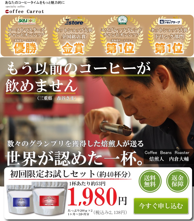 きっかけは、たまたまネットで見つけた「珈琲きゃろっと」というコーヒー豆の通販サイトだった。